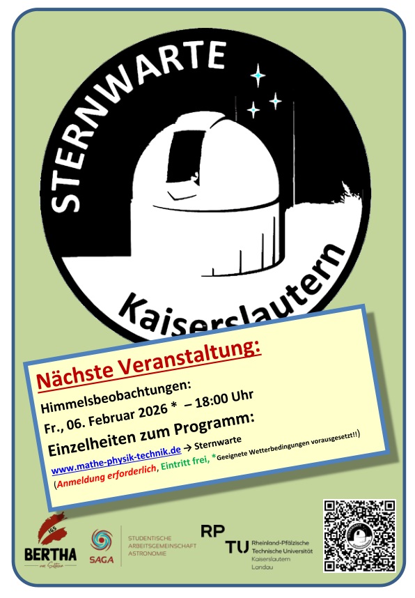 Um den gesamten Himmel beobachten zu können, wurde die Kuppel der Sternwarte dann maximal geöffnet. Dabei ereignete sich plötzlich ein nicht vorhergesehenes Problem. Der Mechanismus er Kuppelöffnung mit der damit verbundenen Teleskopstange war plötzlich defekt. Die Stange löste sich aus der Halterung an der Decke und konnte den Machanismuss nicht mehr bedienen. Bei geöffneter Kuppel bedeutet das natürlich, dass wir unter diesen Umständen die Kuppel nicht mehr schließen konnten, wir hatten also ein großes Problem! Das geplante Beobachtungsprogramm war zu diesem Zeitpunkt weitestgehend abgeschlossen. Die Besucher hatten einen ereignisreichen Beobachtungstermin erlebt und verabschiedeten sich. Die beiden Moderatoren der Veranstaltung (Dr. C. Anders von der Astronomie-AG der Uni Kaiserslautern und Dr. A. Rueff von der Bertha von Suttner IGS) mussten sich jetzt aber dem technischen Problem widmen und einen Weg zur Reparatur der Kuppel finden. Zum Glück sind in der Schule viele Materialien verfügbar. Zu dem Zeitpunkt wäre man ansonsten natürlich auch dies-bezüglich mit erheblichen Schwierigkeiten konfrontiert gewesen. Wir machten uns also zu nächtlicher Stunde auf den Weg und suchten passende Materialien. Eine gut organisierte Physiksammlung war hier natürlich sehr willkommen! Auch die notwendigen Werkzeuge und Hilfsmittel konnten wir uns besorgen und überlegten uns eine Lösung zur Reparatur. Dieser Plan ging dann letztlich auch auf. Der Mechanismus konnte mit etwas Improvisation und Geschick erfolgreich repariert, und die Kuppel anschließend wieder ordnungsgemäß verschlossen werden. Dann endete auch für uns die Veranstaltung und wir konnten uns auf den Heimweg machen.